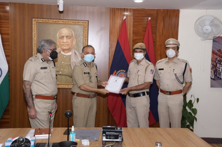 दिल्ली पुलिस कमिश्नर ने दी सिपाही को सम्मान पत्र के सम्म्मान राशि