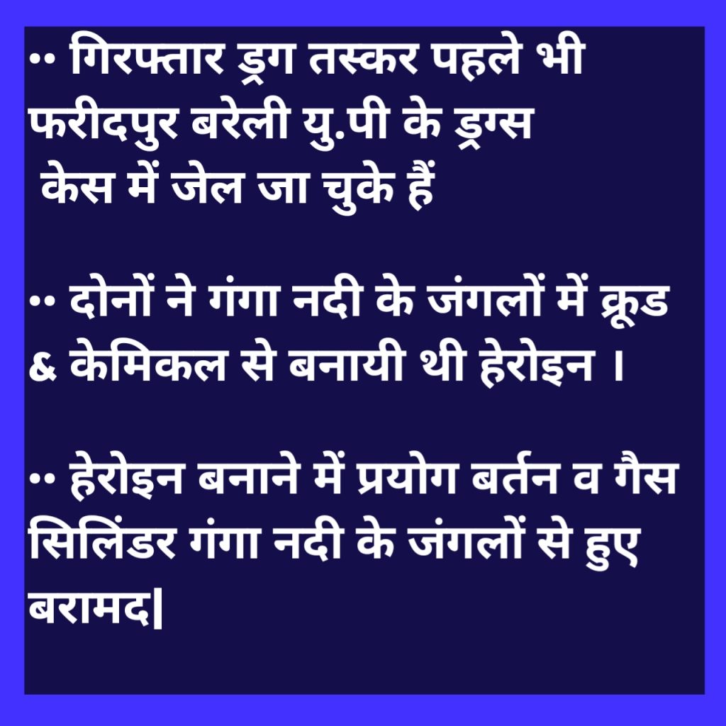 पुलिस रिमांड के दौरान साजिद और वाजिद की निशानदेही पर गंगा नदी के किनारे जंगलों से हेरोइन बनाने में इस्तेमाल किये गये बर्तन व गैस सिलिंडर भी बरामद हुए हैं|
