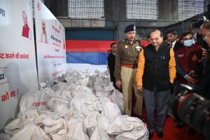 नई दिल्ली : दिल्ली के उपराज्यपाल श्री वीके सक्सेना और पुलिस आयुक्त संजय अरोड़ा और मौजूदगी में आज “नशा मुक्त भारत अभियान” के तहत दिल्ली पुलिस द्वारा जब्त की गई दवाओं का दहन कर नष्ट कर दिया गया. इस अवसर पर पुलिस आयुक्त एवं निस्तारण समिति के सदस्य भी उपस्थित थे. उपराज्यपाल, जिन्होंने एक मशीन में नशीले पदार्थों के का दहन कर दिया. इस मौके पर दिल्ली के उपराज्यपाल राजधानी में नशीले पदार्थों के खतरे को रोकने के लिए दिल्ली पुलिस द्वारा किए जा रहे प्रयासों पर संतोष व्यक्त किया। आज नष्ट की गई ड्रग्स का अनुमानित मूल्य 1513.05 करोड़ बताया गया है.