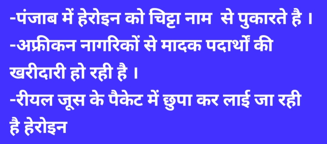 नार्थ दिल्ली : ‘चिट्टा‘ यह पंजाब में नशा खोरों के बीच बड़ा चर्चित नाम है । दरअसल यह उच्च क्वालिटी ‘हेरोइन’ है जिसे पंजाब में ‘चिट्टा’ के नाम से पुकारा जाता है ।