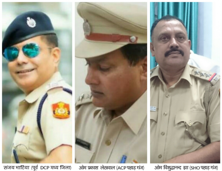 पहाड़ गंज थाना इंचार्ज विशुद्धानन्द झा के साथ संदीप भाटी को गिरफ्तार करने वाली पुलिस टीम