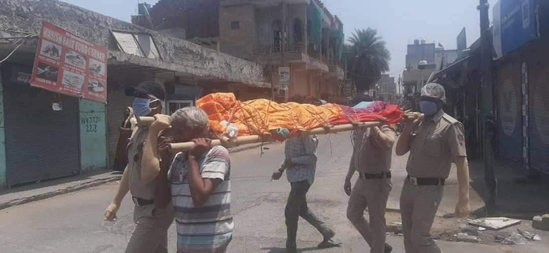 दिल्ली में कोरोना के ख़ौफ़ से एक बुज़ुर्ग महिला की मौत के बाद जब अर्थी को उठाने कोई नही था। दिल्ली पुलिस के सिपाहियों ने बेटा बनके कन्धा दिया और करवाया अंतिम संस्कार भी करवाया।