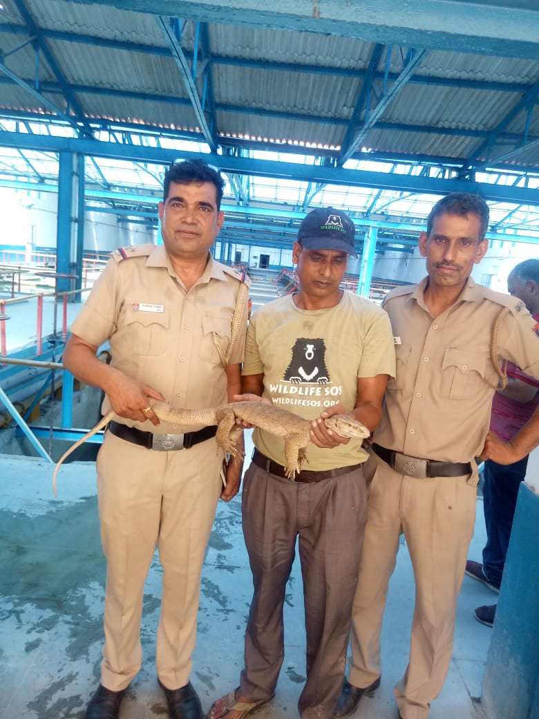 मॉनिटर विजार्ड को पकडे हुए दिल्ली पुलिस के सुरेश कुमार (ए एसआई ), सत्यवान सिपाही और वाइल्ड लाइफ कोर्डिनेटर सूरज
