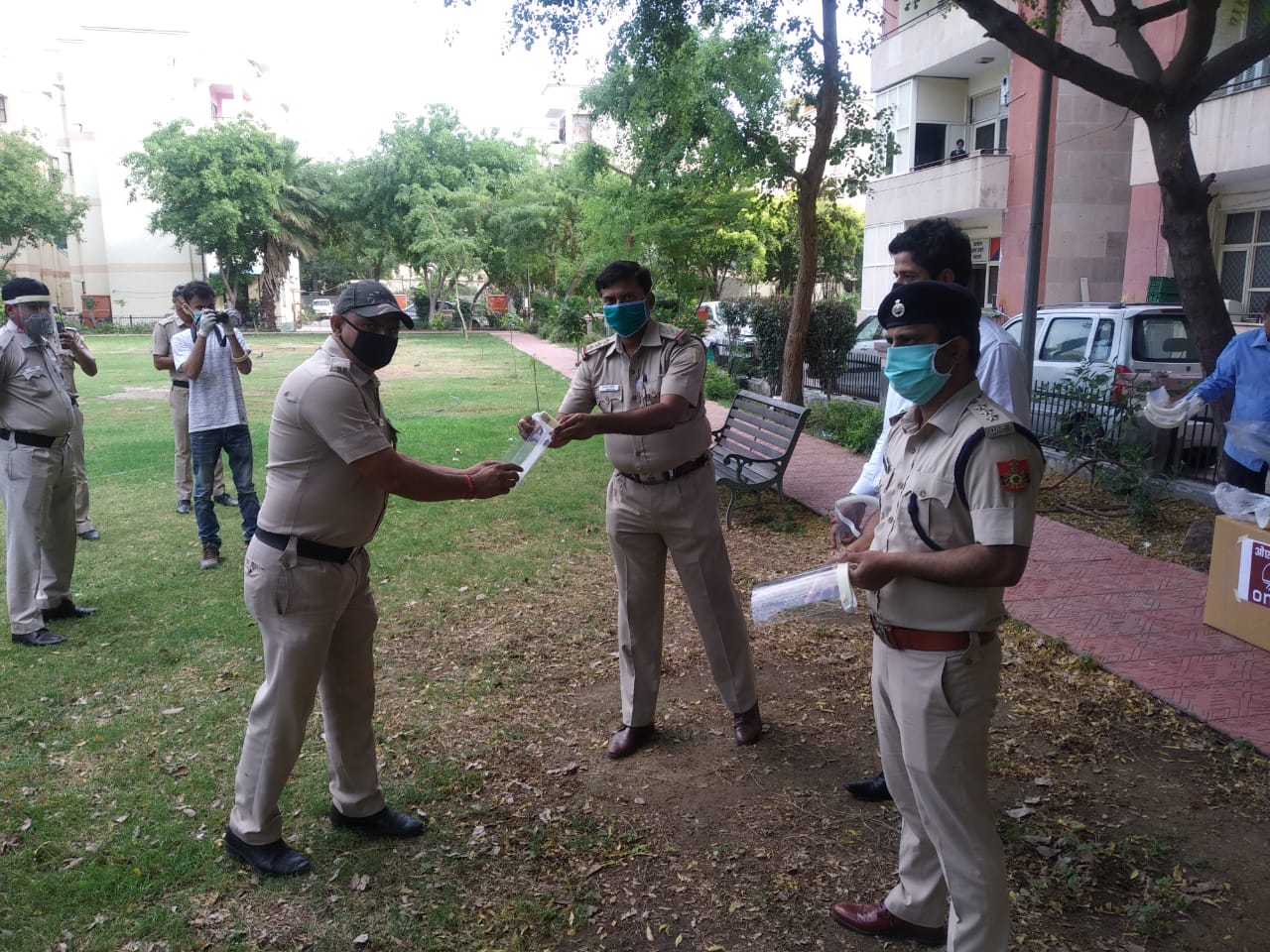 नई दिल्ली : कोरोना की त्रासदी शिकार बन रहे पुलिसकर्मियों की सुरक्षा भगवान भरोसे चल रही है। हाल ही में ही दिल्ली पुलिस विभाग में कई पुलिस कर्मियों को कोरोना ने शिकार बनाया है। दिल्ली से बाहर लुधियाना में ACP की कोरोना से मौत की खबर है। लगातार जनता के बीच रहने से पुलिस के लिए कोरोना से बचने का कोई पुख्ता इंतजाम भी नहीं है। अब ONGC के द्वारा पुलिस को सुरक्षा के लिए कुछ सहयोग किया जा रहा है। दिल्ली के शाहदरा जिला मधु विहार थाने में मुंह और आँखों के बचाव के लिए सुरक्षा किट बांटी गई। कोरोना का हमला आँखों और मुँह पर भी होता है। इस बात को ध्यान में रखते हुए मधुविहार थाने के हर पुलिस कर्मचारी को यह सुरक्षा किट बांटी गई। थाना प्रभारी मधु विहार द्वारा थाने में प्रत्येक कर्मी को यह किट पहनना अनिवार्य है।