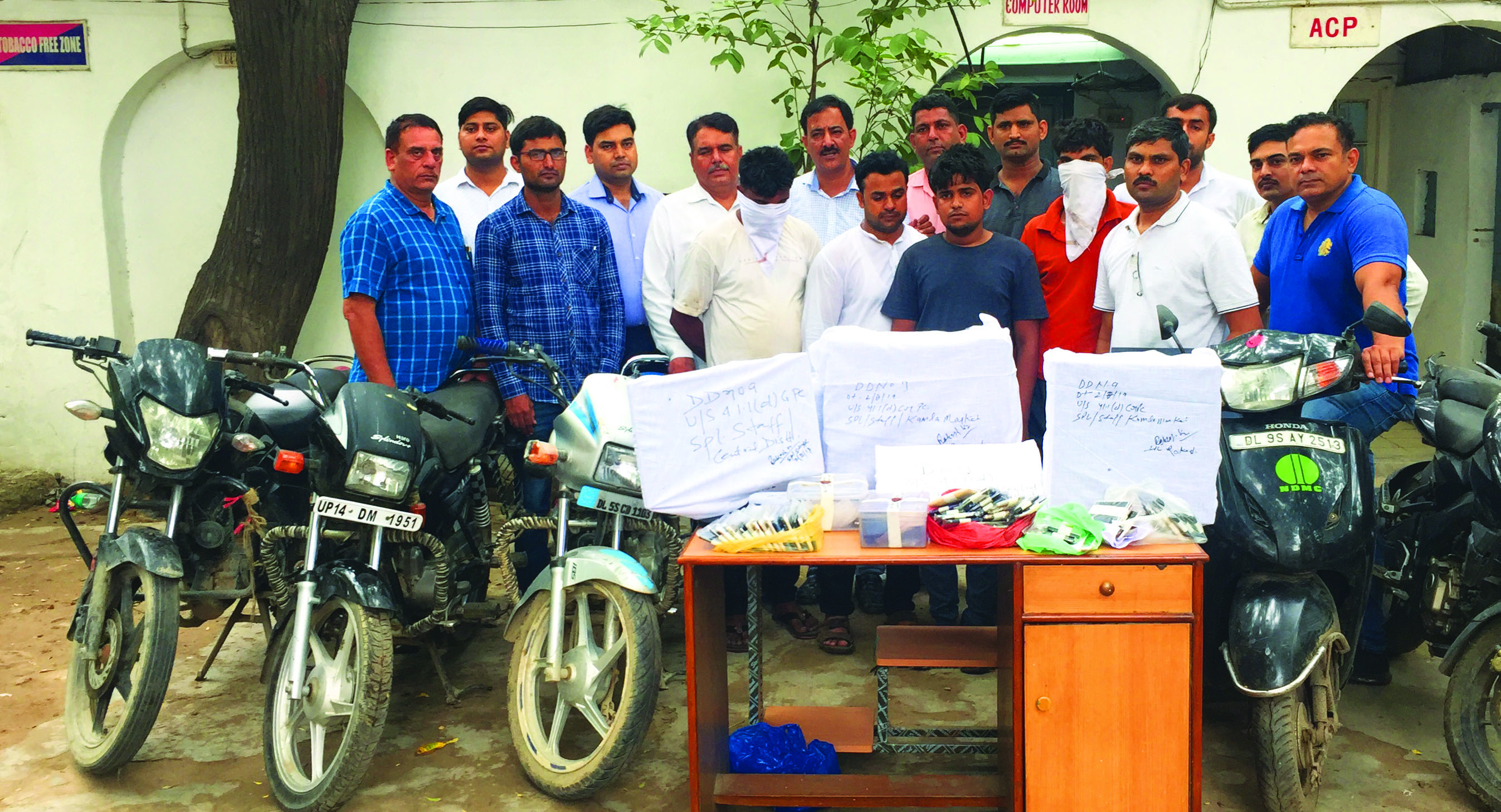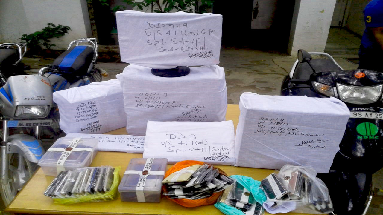 The police team laid a trap near Lal Quarters, Press Road, Delhi. At about 12:30 PM, two persons came on a black colour m/cycle and waited for someone near Gate of Lal Quarters. At the instance of secret informer, both of them were overpowered and apprehended by the police team. They were identified as (1) Sandeep Sharma @ Sonu and (2) Deepak. On questioning about the ownership of the motorcycle, they could not give any satisfactory reply and on verification, it was revealed that the motorcycle was found stolen from the area of P.S. Gokulpuri vide e-FIR No 025787/19 u/s 379 IPC. On their personal search, 20 mobile phones were recovered and on verification, some of the mobile phones were linked with the cases of theft of different police stations of Delhi. Further, at their instance, another four two-wheelers which were stolen from different areas were also recovered.