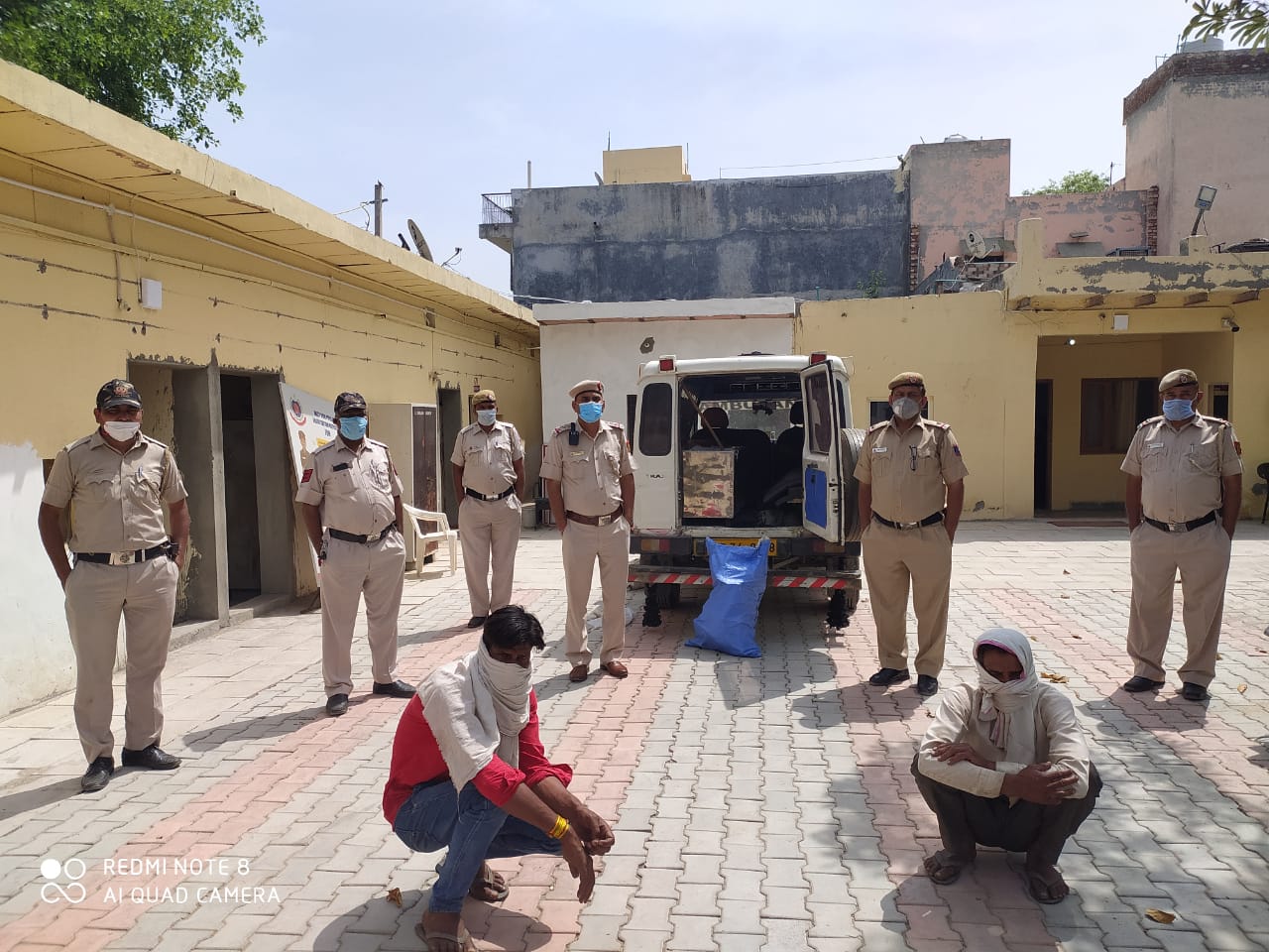 On 16.04.2020, a secret information was received from the informer that one Ambulance Force Vehicle bearing Haryana Number Place would come from Chhawla Village side towards Qutab Vihar area along with huge quantity of illicit liquor. Immediately, a dedicated team of Insp. Gyanender Rana SHO/Chhawla, HC Ishwar, Ct. Mahender & Ct. Pradeep under the supervision of Shri Ashok Tyagi, ACP/Chhawla was constituted. The police staff laid a trap with the informer on the road between Chhawla Village and the field area of Qutab Vihar nearby Shamshaan Ghat and blocked the road with barricades and started vehicle checking. Later on, at around 9:30 AM, one Ambulance Force Jeep was seen coming towards the above said road and the informer after identifying the ambulance signaled the team members. Accordingly, one of the team members signaled him to stop the ambulance. Seeing sudden barricading at the road the ambulance driver and another person came out of the car and tried to escape from the spot. Both were chased, caught and overpowered.