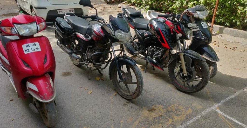 The staff of Police Station Pahar Ganj, Central District has busted a gang of auto-lifters-cum-snatchers and arrested three accused persons namely (1) Raj @ Golu aged 26 years s/o Mahavir r/o Gali No.10, Multani Dhanda, Pahar Ganj, Delhi; (2) Chetan aged 22 years s/o Suresh @ Raju r/o Gali No. 9, Multani Dhanda, Pahar Ganj, Delhi and (3) Ritik aged 18 years s/o Sanjay r/o Gali No. 11, Multani Dhanda, Pahar Ganj, Delhi. Five stolen two-wheelers and one snatched mobile phone have been recovered from their possession and six cases have been solved.