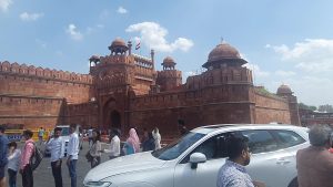 त्योहारों और शनिवार होने के चलते लाल किले पर सैलानियों की अपार भीड़ थी.  शाम होने के बाद लाल किले से भीड़ छटने लगी ।