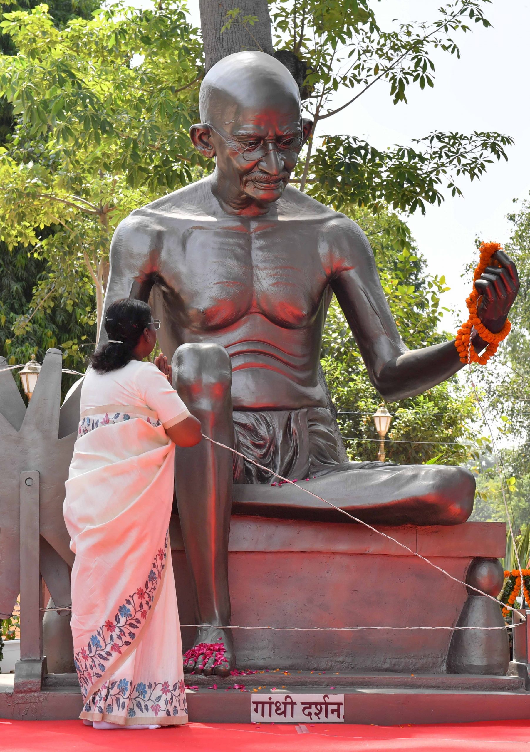 नई दिल्ली : 04 सितंबर 2023: राष्ट्रपति श्रीमती द्रौपदी मुर्मु ने आज (4 सितम्बर, 2023) को नई दिल्ली में स्थित गांधी दर्शन में राष्ट्रपिता महात्मा गांधी की 12 फीट ऊंची प्रतिमा का अनावरण किया और परिसर में ‘गांधी वाटिका’ का उद्घाटन किया.