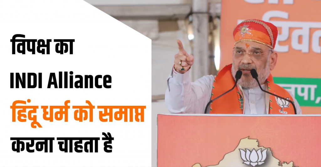 ♦ उदयनिधी स्टालिन पर अमित शाह का निशाना, सनातनियों को मिटाना चाहती है DMK