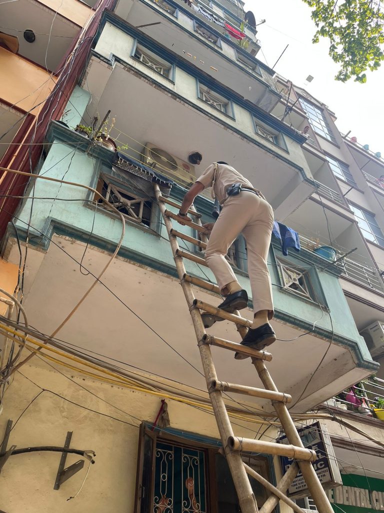 हवलदार सतपाल और सिपाही चिराग ने तुरंत मौके पर पहुंचे. चार मंजिला इमारत के फर्स्ट फ्लोर पर अंदर से एक सीनियर सिटीजन महिला मदद के लिए चिल्ला रही थी, अंदर से दरवाजा लॉक था जिसे खोल नही पा रही थी. यह महिला 3 घंटे से अंदर बंद थी. दोनों पीसीआर कर्मी मैन गेट के लॉक खोलने की कोशिश की मगर लॉक नही खुला. दोनों ने एक सीढ़ी का इंतजाम किया और उसके सहारे फर्स्ट फ्लोर की बालकनी पर पहुंचे. बालकनी के दरवाजे को मशक्कत करके खोल दिया.