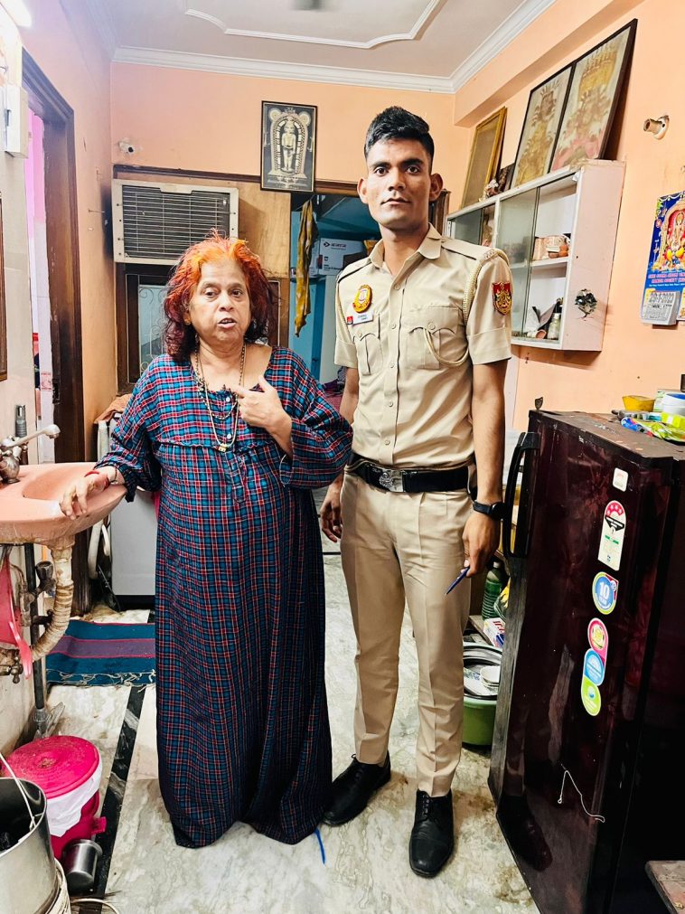 दिल्ली पुलिस का पीसीआर कर्मी सिपाही चिराग बुजुर्ग महिला के साथ